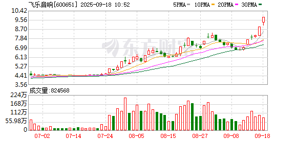 飞乐音响再度涨停,5个交易日内录得3个涨停,累计涨幅为39.20%,累计换手率为19.06%。截至9:55,该股今日成交量7947.88万股,成交金额7.60亿元,换手率3.17%。最新A股总市值达245.69亿元。